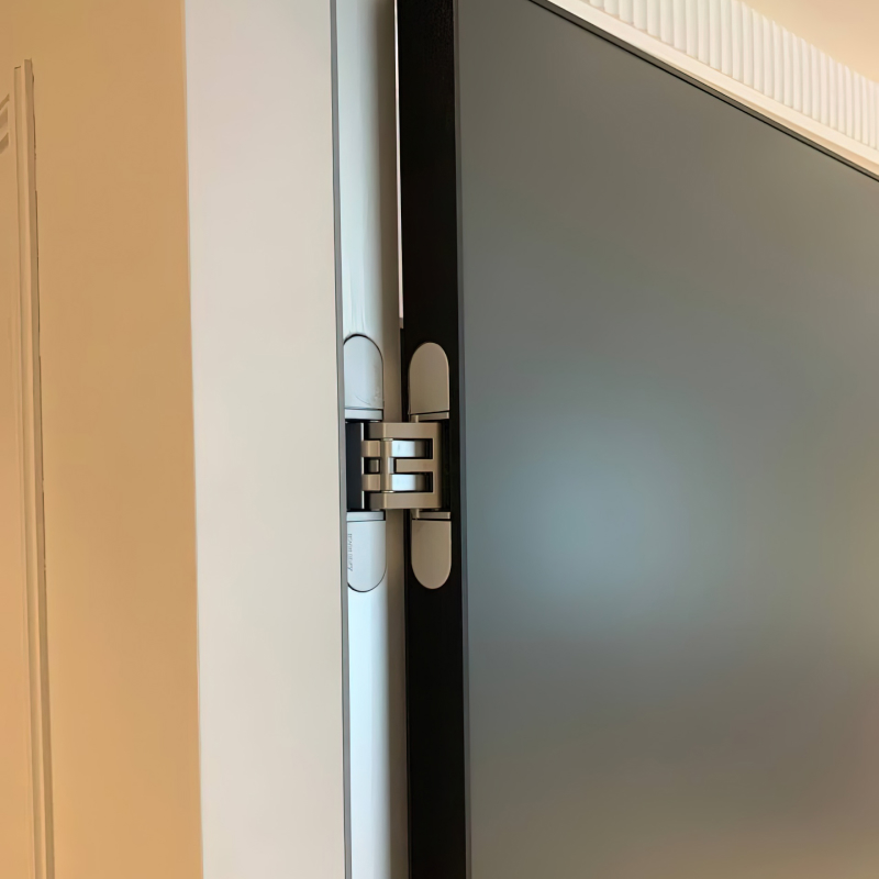 Вы можете выбрать открывание дверного полотна «от себя» или «на себя», при этом внешняя сторона двери всё равно остается на одном уровне со стеной.